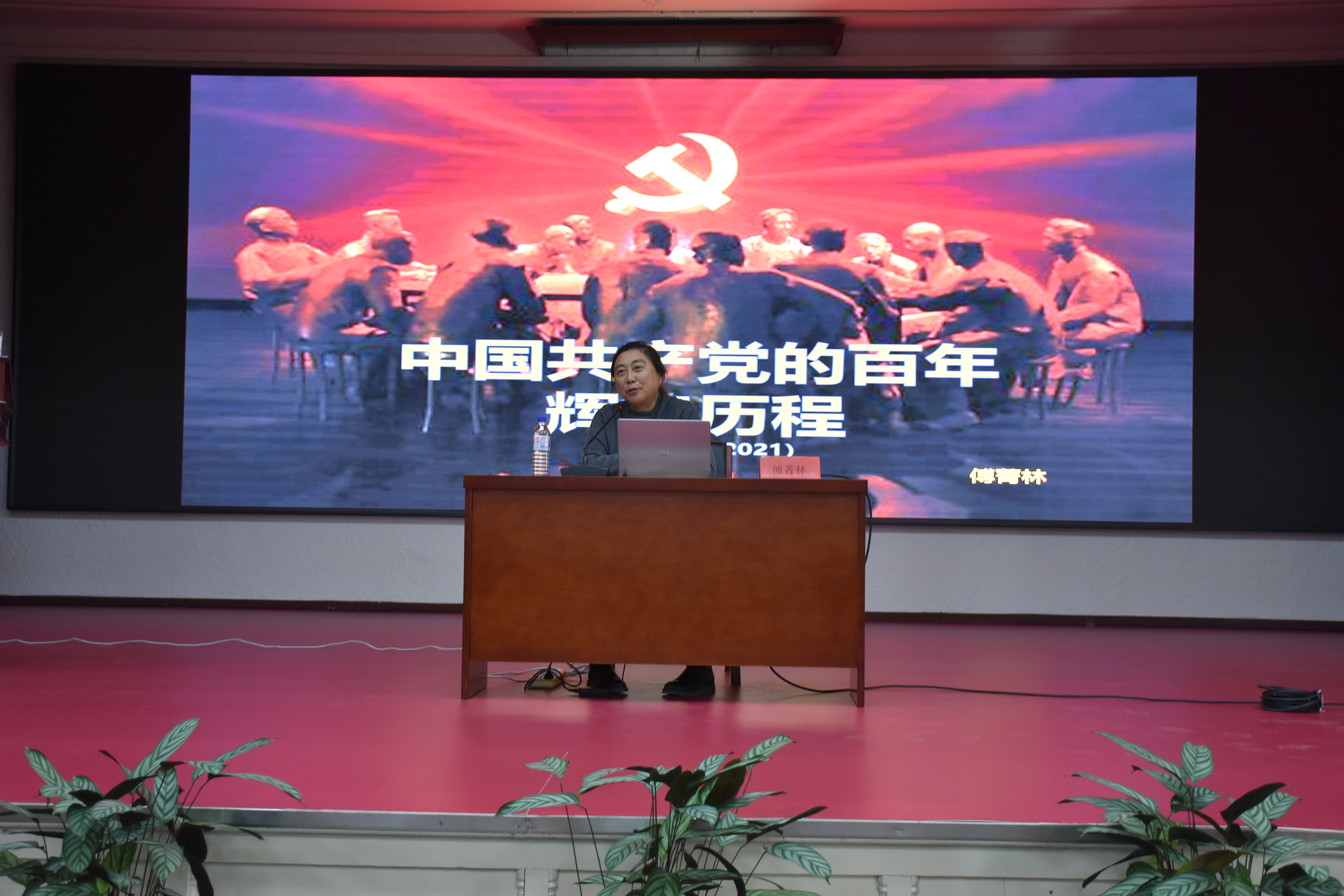 202110月11日,丝袜av 关心下一代委员会副主任马克思主义学院傅菁林教授在丝袜av 报告厅为2021级新生做题目为《中国共产党的百年辉煌历程》的专题报告。