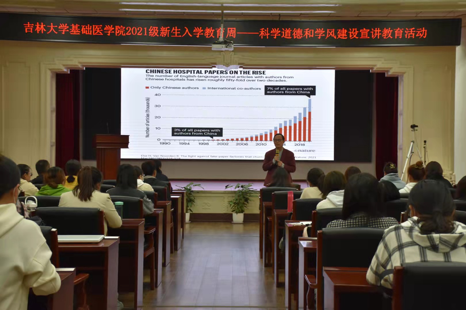 于永利教授以“远离学术造假”为切入点,强调了秉持严谨认真的科研态度的重要性。从端正学术态度,正确树立人生目标,研究生心理自我疏导等方面出发,教育引导研究生在学术研究中坚守科学道德、养成良好学风。同时,教导同学们要做人诚信,实事求是,积德行善;做事要认真严谨,踏实肯干;做学问则要守住底线,打好基础,秉持严谨认真的科研态度。