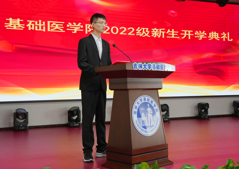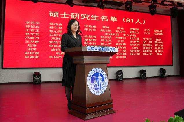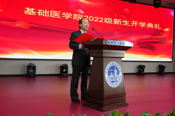 建院 71 年来的首届 20位本科生以及来自全国各地的107名研究生,并向辛勤培育他们的老师和家长们表示衷心感谢!基础医学是医学学科的基石,生物医学科学是基础医学学科门类下以培养医学科学家为主要培养目标的重要学科,希望全体同学能够传承白求恩精神,能够跟上国家和时代发展的脉搏,做合格的创新型、交叉型人才。院长表示择天下英才而育之是学院的荣幸,育天下英才为师者的责任,从今天起学院和全体教师将伴随同学们成长的脚步,一同成长、一同奋斗、一同成就,为建成“国内一流,国际上有影响的高水平大学”一起并肩战斗。