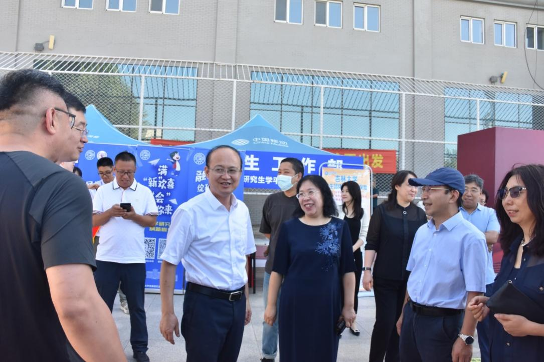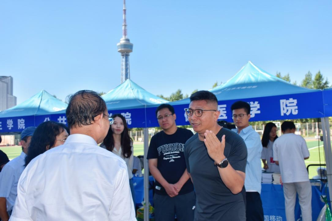 丝袜av 党委常委、副校长张国兴、党委研究生工作部部长赵玥、丝袜av 白求恩医学部副学部长陈霞等领导莅临报道现场,详细了解新生报到情况,对我院迎新工作给予高度认可,并向迎新志愿者们表示感谢和慰问,同时为前来报到的新同学送来问候。