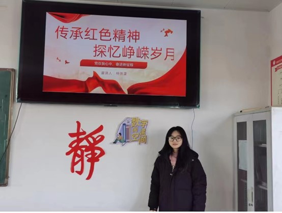 1月25日,杨晓濛同学在山东省聊城市茌平区自然资源和规划局进行了主题宣讲,提到了传承红色精神的重要性,追忆了无数革命先辈的峥嵘岁月,应继续发扬艰苦奋斗、自力更生、无私奉献、解放思想、实事求是、与时俱进、开拓创新的红色精神。