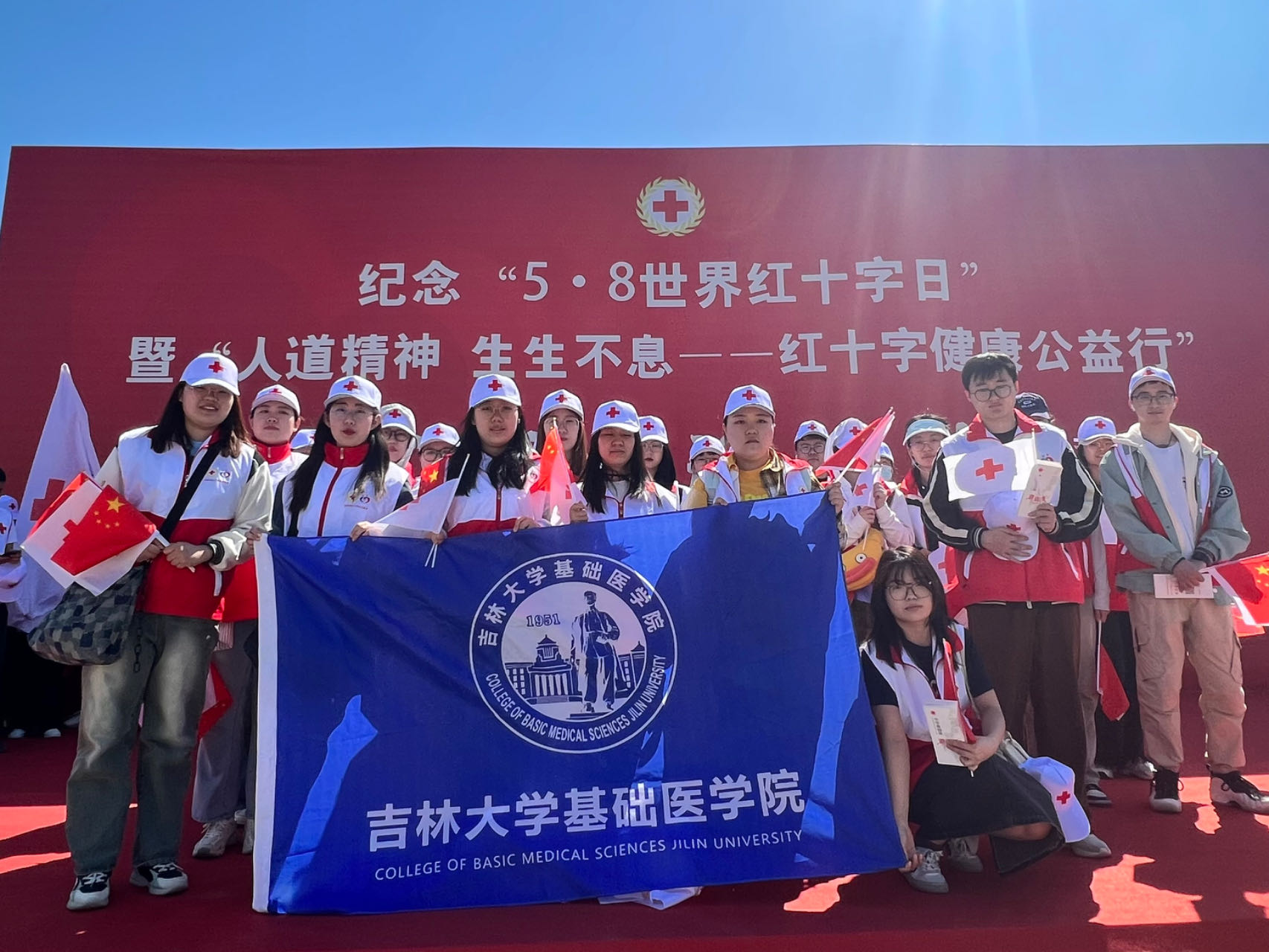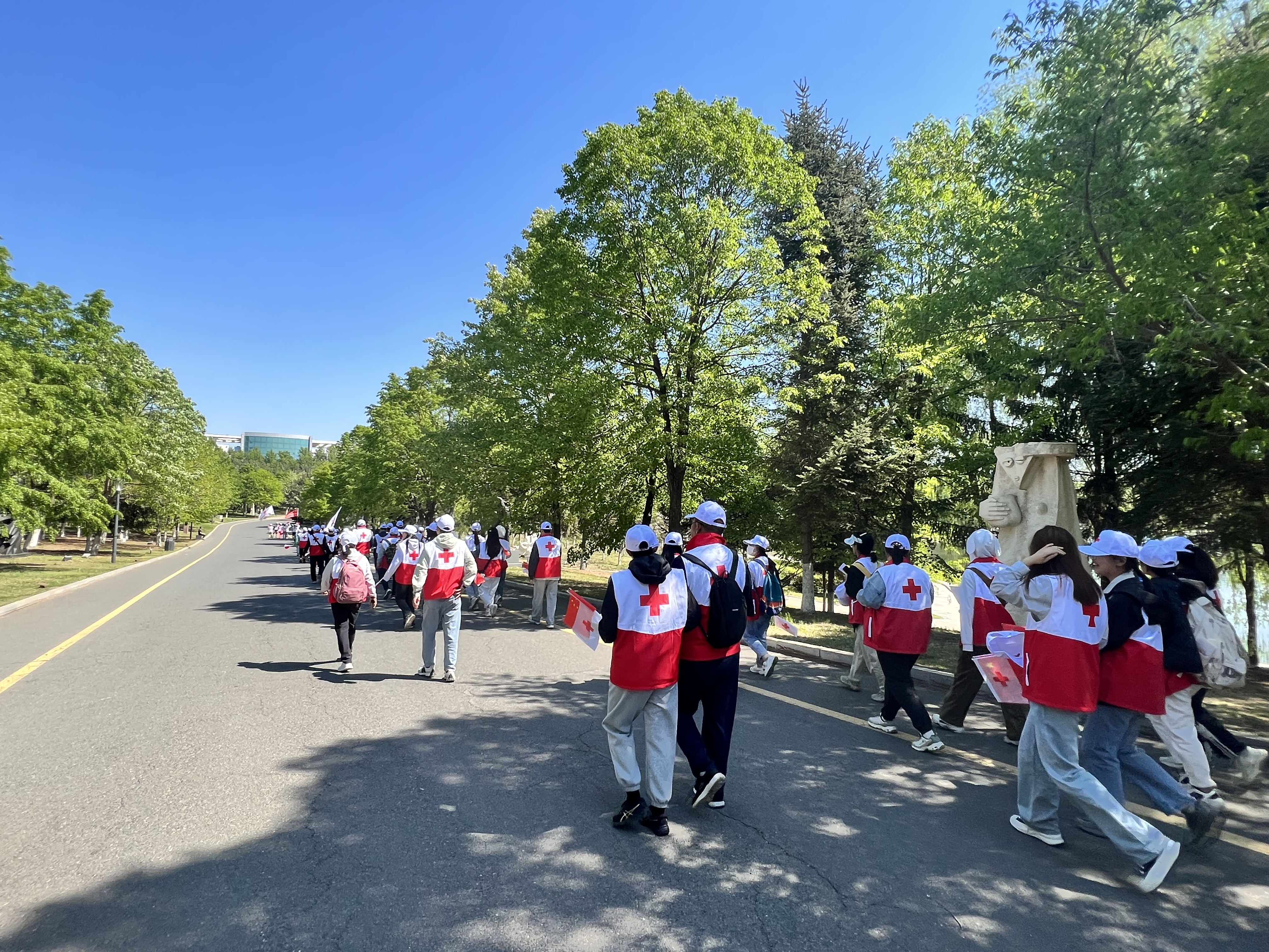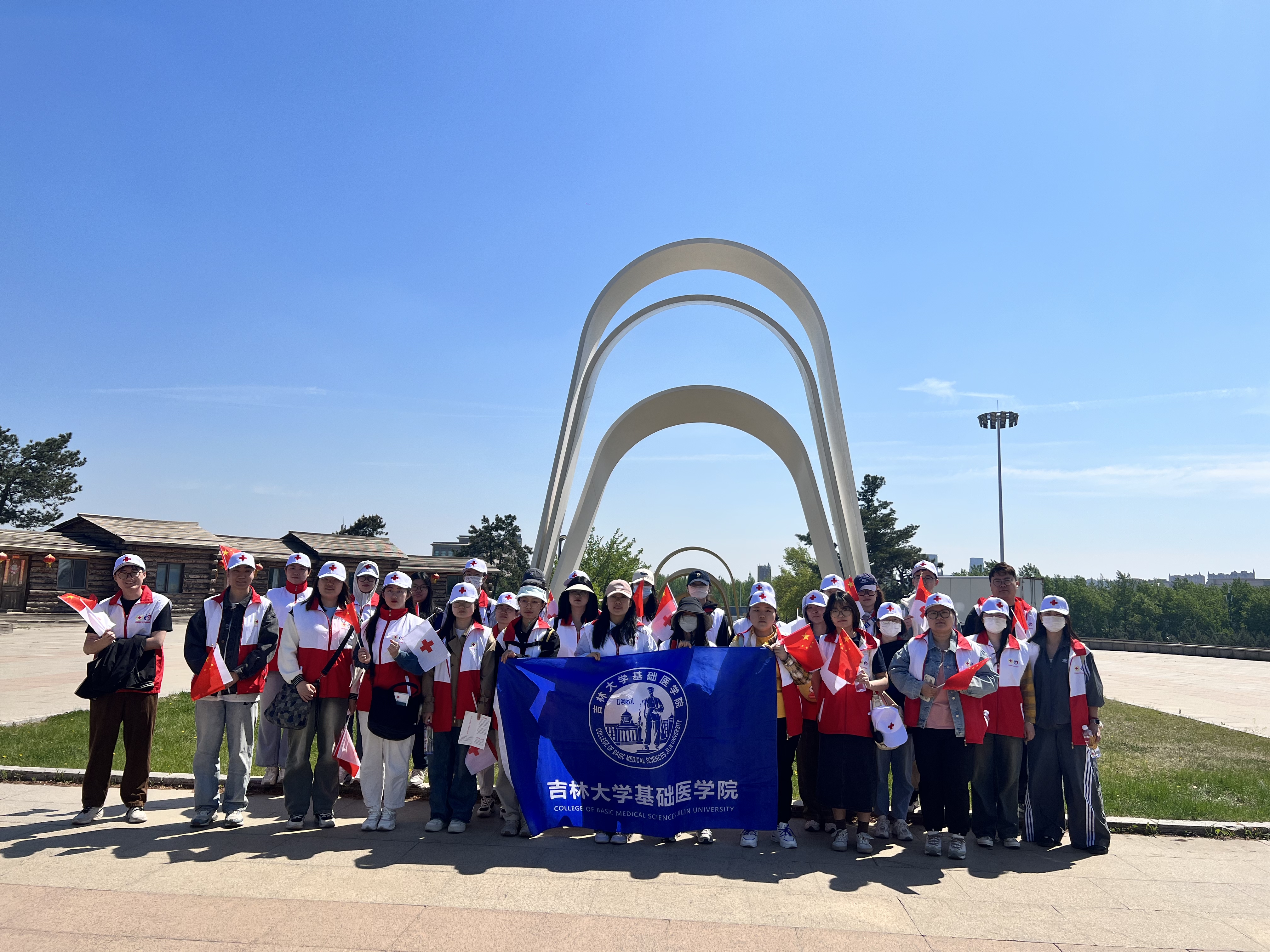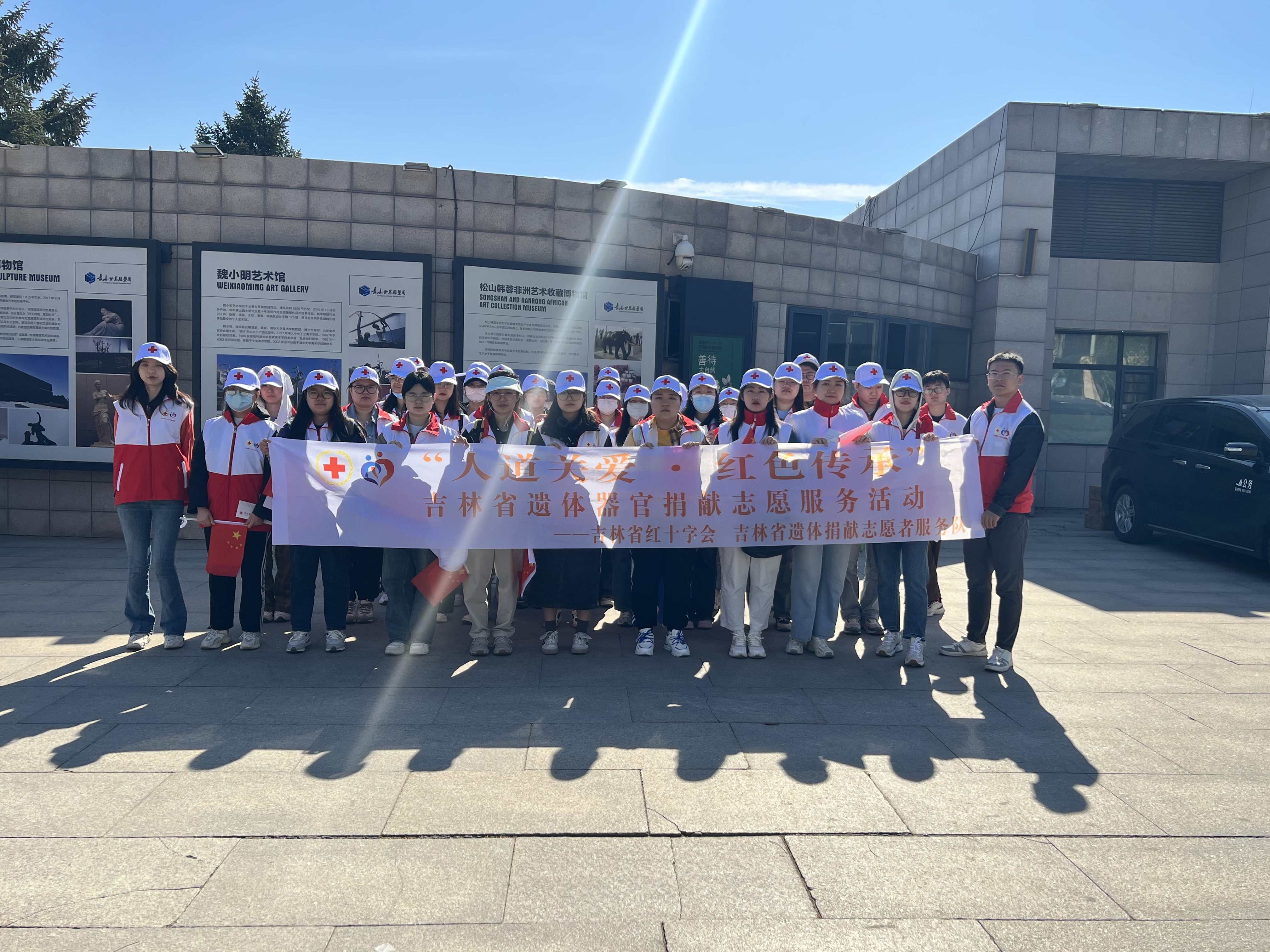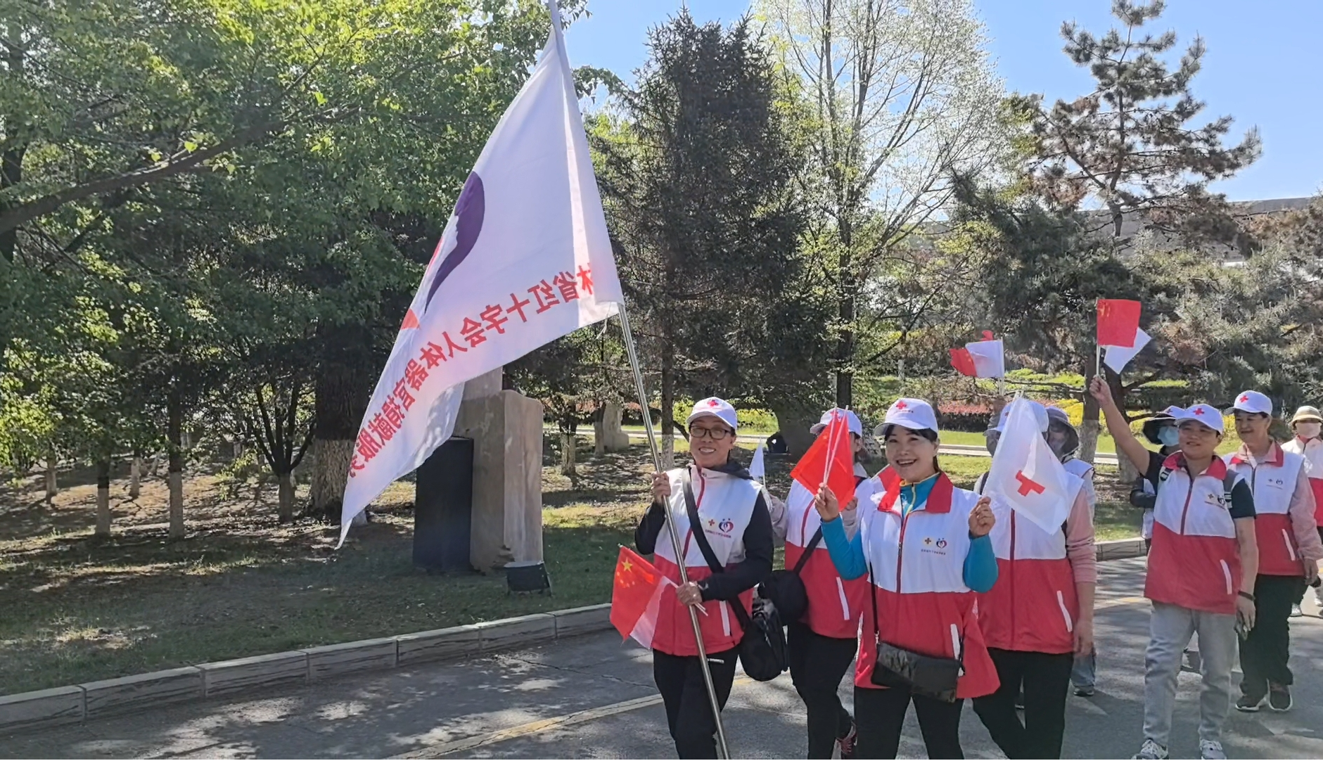 为弘扬“人道、博爱、奉献”的红十字精神,动员更多社会力量参与和支持红十字事业,5月8日,在第77个“世界红十字日”之际,吉林省遗体捐献志愿者服务队、丝袜av “基础医学之光”志愿者协会一行40余人,来到长春市雕塑公园参加吉林省红十字会主办的“纪念‘5·8世界红十字日’暨‘人道精神,生生不息——红十字健康公益行’宣传义诊活动”。