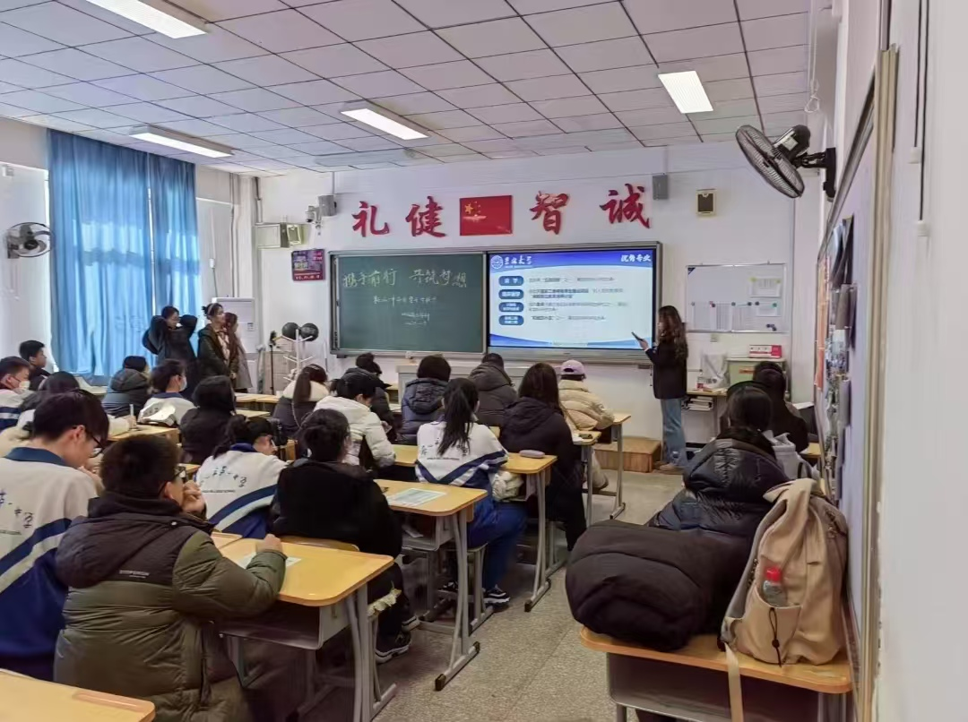 在正式开展宣讲活动之前,宣讲团队进行了充分的准备工作。首先,在负责人的带领下,团队成员制定出了全面详细的策划案。其次,团队成员按照策划案分组进行不同的准备活动。部分成员负责资料搜集和PPT制作,以确保信息的准确性,全面性以及清晰传递。其余成员则负责后勤保障和模拟演练等工作,通过反复打磨演讲稿和宣讲流程,以确保成员在宣讲过程中能够准确、流畅地进行信息传递,增加高中生们的体验感。