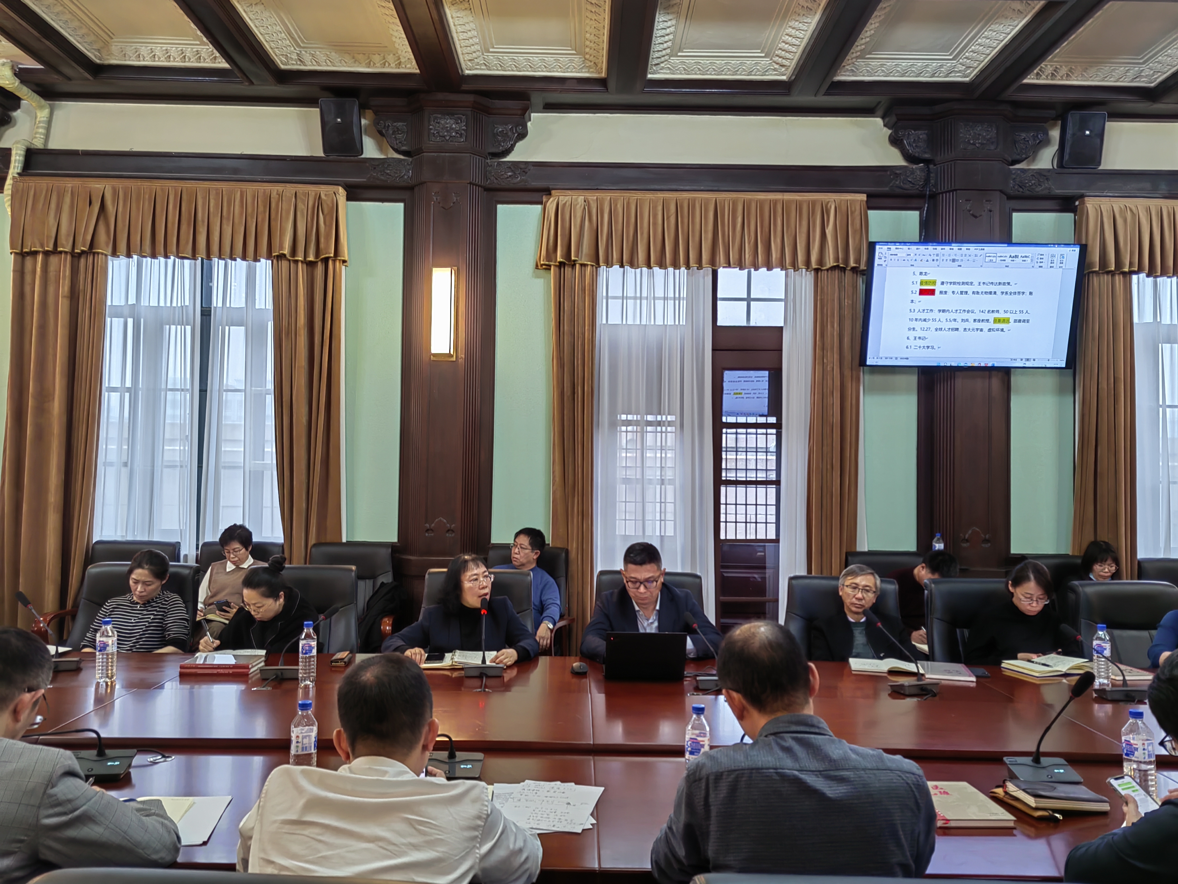 召开党委理论学习中心组(扩大)会议,学院领导班子成员、党委委员、各学系(中心)主任、教工党支部书记以及各行政科室主要负责人参加会议。会议由学院党委书记王晓荣主持。