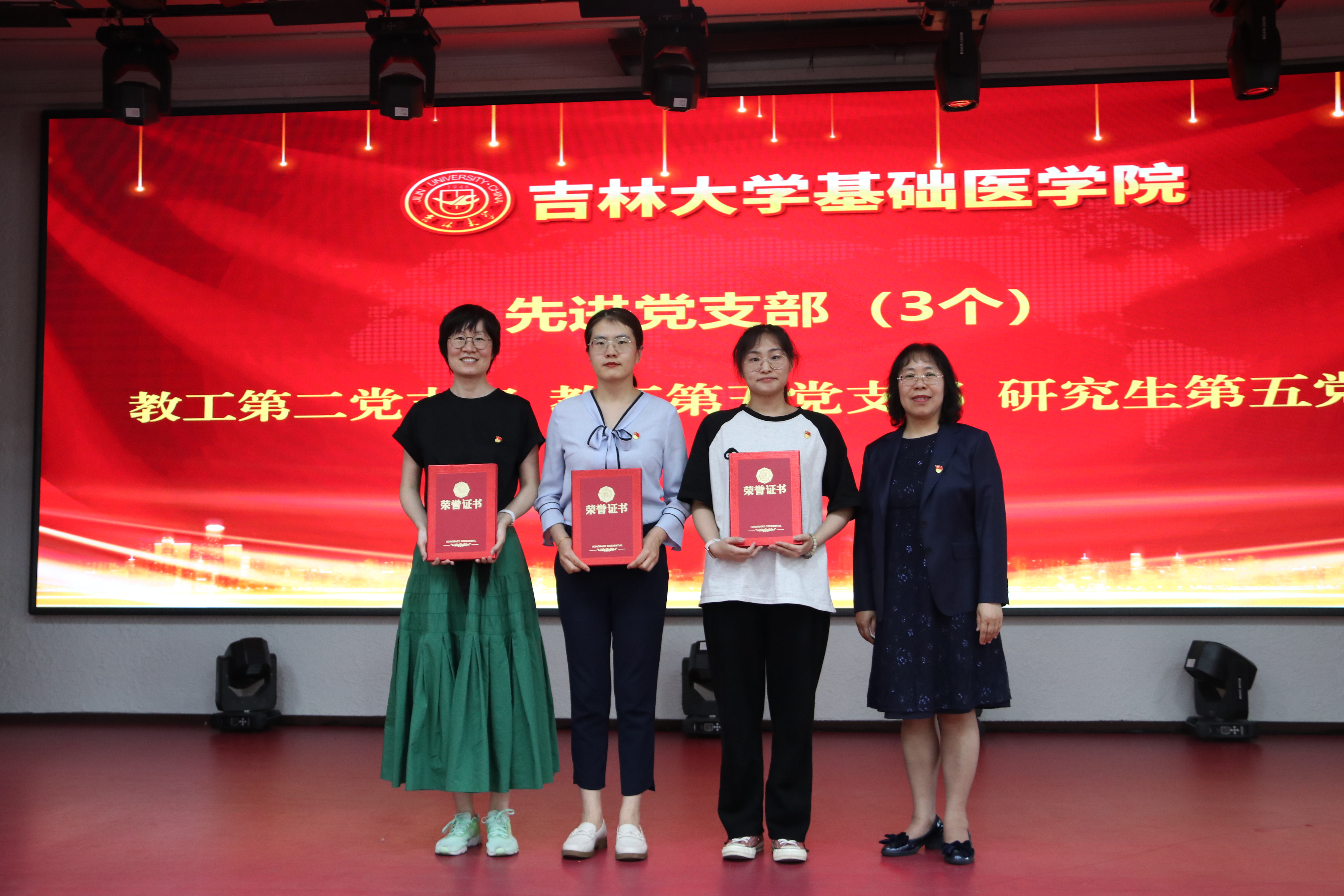 委员会关于表彰优秀共产党员、优秀党务工作者和先进党支部的决定》。学院党委委员、领导班子成员为先进党支部、优秀党务工作者和优秀共产党员代表颁发了荣誉证书。优秀党务工作者刘芬作为代表上台发言。