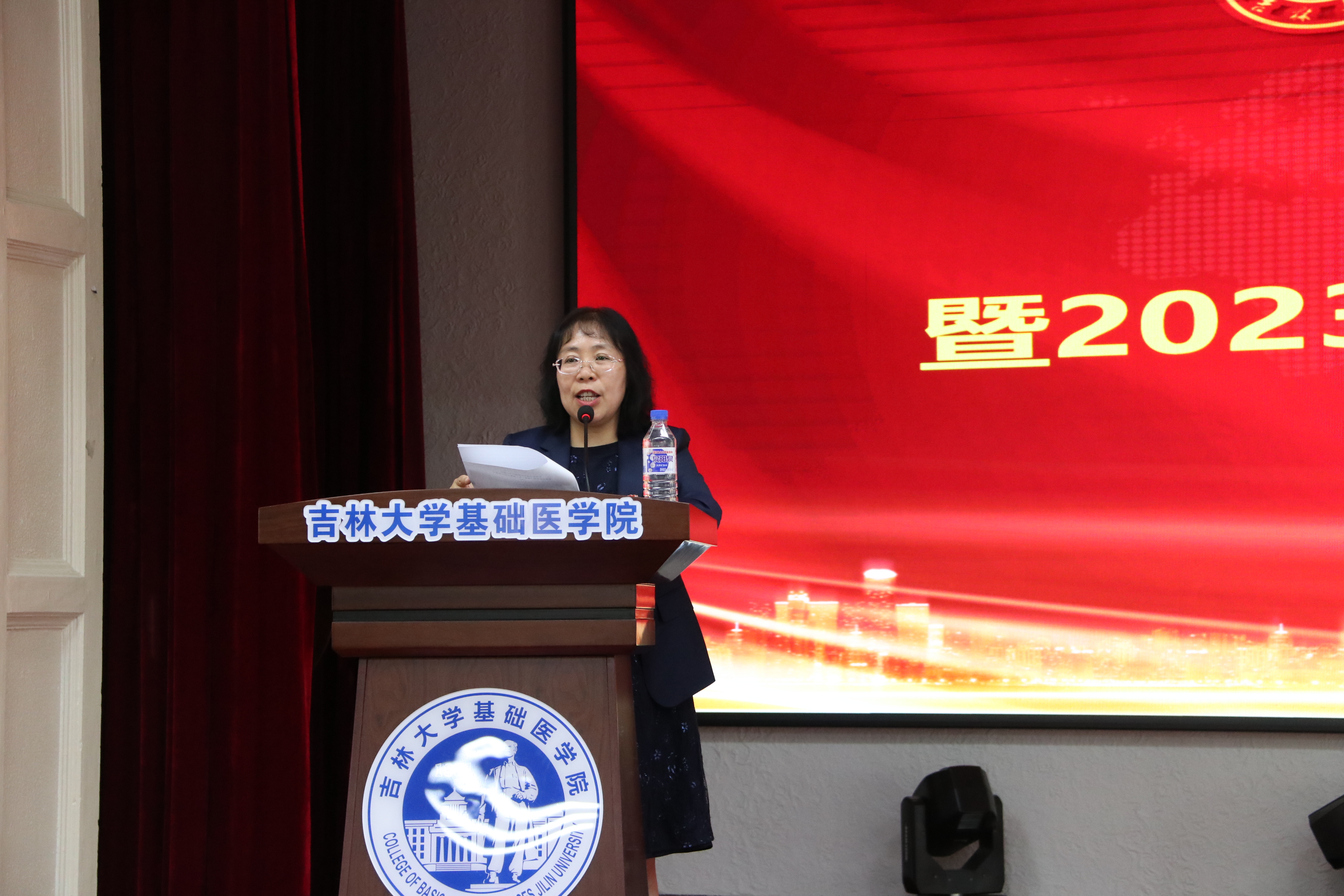 党委书记王晓荣围绕主题教育“学思想、强党性、重实践、建新功”的总要求为全体党员上了一次生动党课。王书记强调,在全党深入开展主题教育活动之际,学院党委认真开展习近平新时代中国特色社会主义思想主题教育活动,有的放矢设计读书班学习,持续推进基础医学教育创新发展。她在讲话中指出,为祖国和人民需要服务是学院创建以来的理想追求和深刻认同的“文化底蕴”,学院党委将团结带领全院师生员工,在教学、科研、人才培养等各个方面不断前行。全院党员同志们要不断加强学习、统一思想,保质保量完成我们的历史使命,不断为学院的发展创造新的历史辉煌。