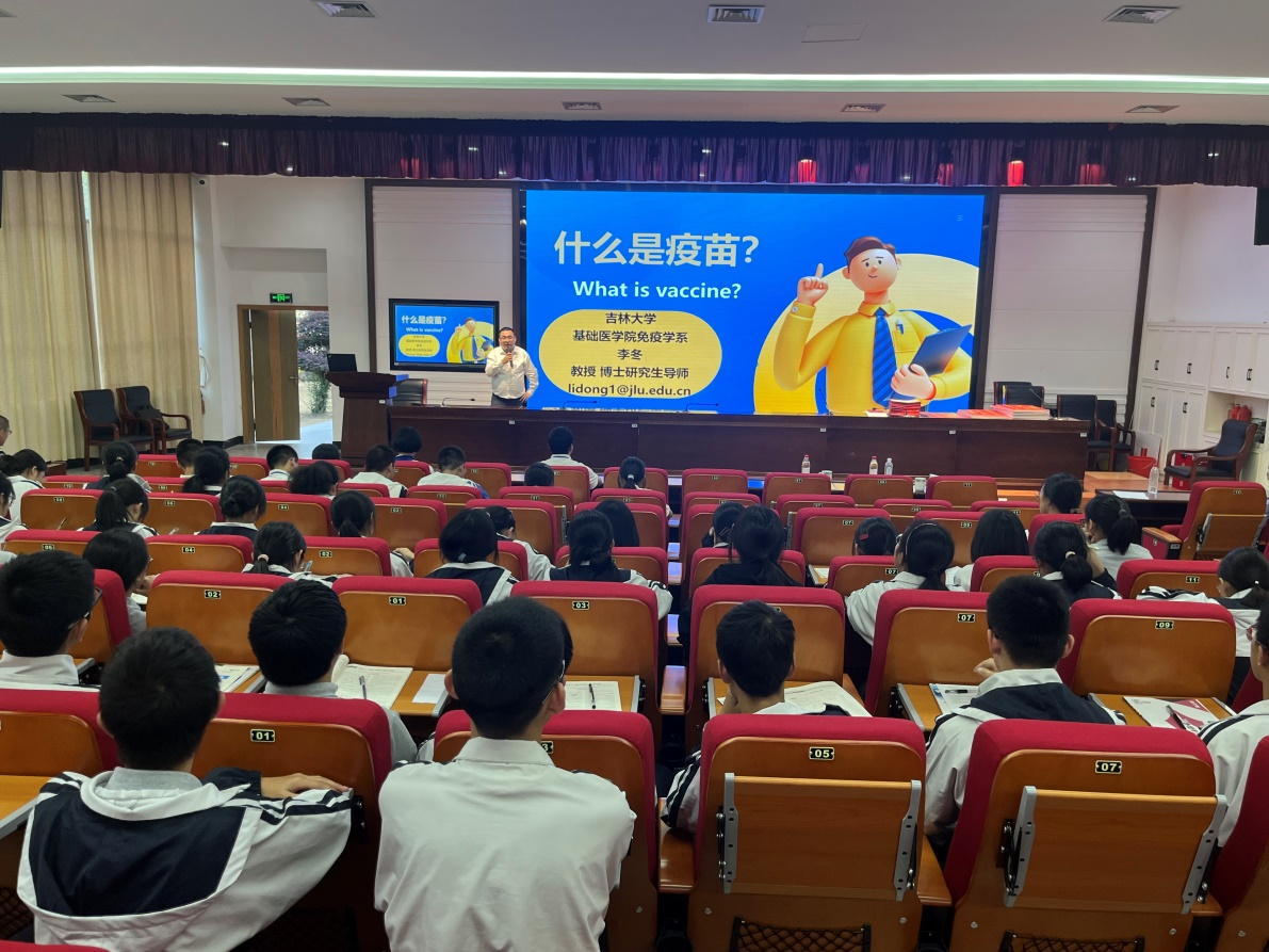 培养多名优秀生源表示感谢。李冬教授以《什么是疫苗》为题,为三所中学的同学们开展了三场科普讲座。李冬教授带来的精彩演讲不仅突出知识性、科学性和通俗性,更强调趣味性和新颖性。他以浅显、幽默的语言,讲授深奥的现代生物技术知识,介绍最新的疫苗研究成果和未来发展趋势,营造了浓厚的科普活动氛围。讲座后,李冬教授以《筑梦启航在吉大》为题对丝袜av