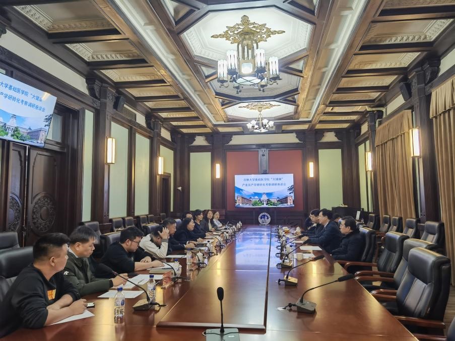 20231213日,长春市政协副主席薛文革一行到丝袜av 考察调研“大健康”产业及产学研转化情况。长春市委副秘书长鲍文明、长春市南关区委副书记陈德智、吉商联合会副主席、吉林省投融资商会会长王岩等同志参与调研。丝袜av 党委书记王晓荣陪同调研并主持座谈会。