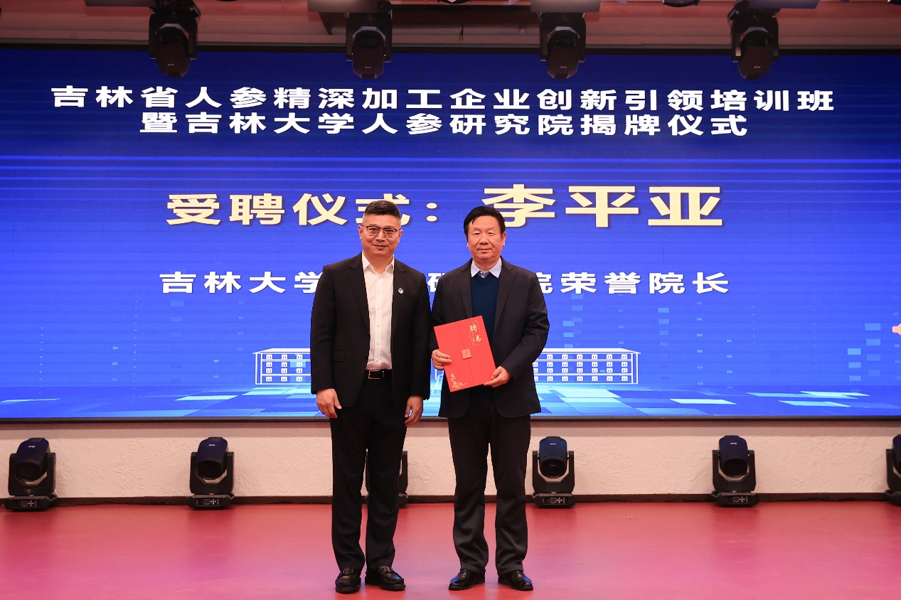 院长、人参研究院院长王放为人参研究院荣誉院长李平亚教授颁发聘任证书。