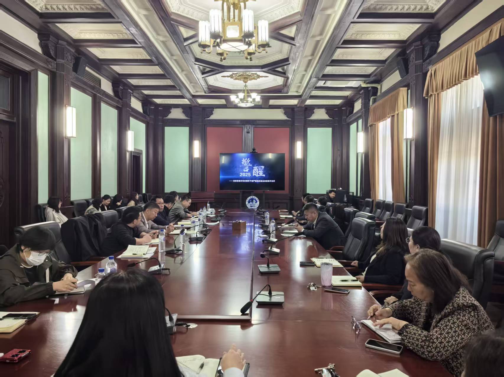 召开全面从严治党专项工作暨警示教育会议,深入贯彻党的二十大及二十届历次全会精神,严格落实二十届四中全会工作部署,全面领会二十届中央纪委五次全会要求,深学细悟习近平总书记关于党的建设、党的自我革命重要思想。学院领导班子成员、各科室(学系、中心)负责人、教工党支部书记参会。会议由学院院长王放主持。
