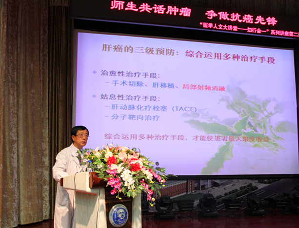 李薇、马克威、宋艳秋、赵恒军、刘子玲、高素君、白欧、崔久嵬依次介绍了肿瘤及胃肠道肿瘤、肺癌、乳腺癌、肝癌、子宫颈癌、白血病、淋巴瘤和肿瘤免疫治疗发展简史及启示。教授们从我国的现状入手,分析发病因素,介绍相应的诊断检查手段,并着重讲解了如何进行疾病预防,强调早诊与筛查的重要性,争取做到早发现、早治疗。他们以渊博的学识以及丰富的临床经验为基础,从医学的专业视角解读常见肿瘤与癌症,使同学们对此类疾病有了更深刻的认识,开拓了学术视野。