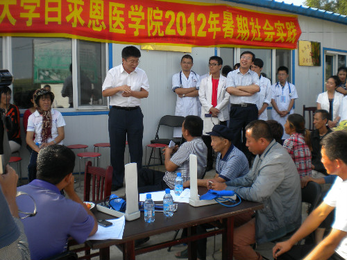 白求恩医学院12名师生汇合,赴东丰县杨木林镇太安村,先后开展了村民走访、中小学校宣教、乡镇卫生院见习、基层卫生体系调研、农村产业园参观、县医院实习等社会实践活动。期间副校长王冠军等专程到东丰县看望了参加社会实践的两岸师生。社会实践团队回到长春后,在白求恩第一医院进行一周的临床实习。26日,在白求恩第一医院召开了首次海峡两岸双向联动社会实践总结会。