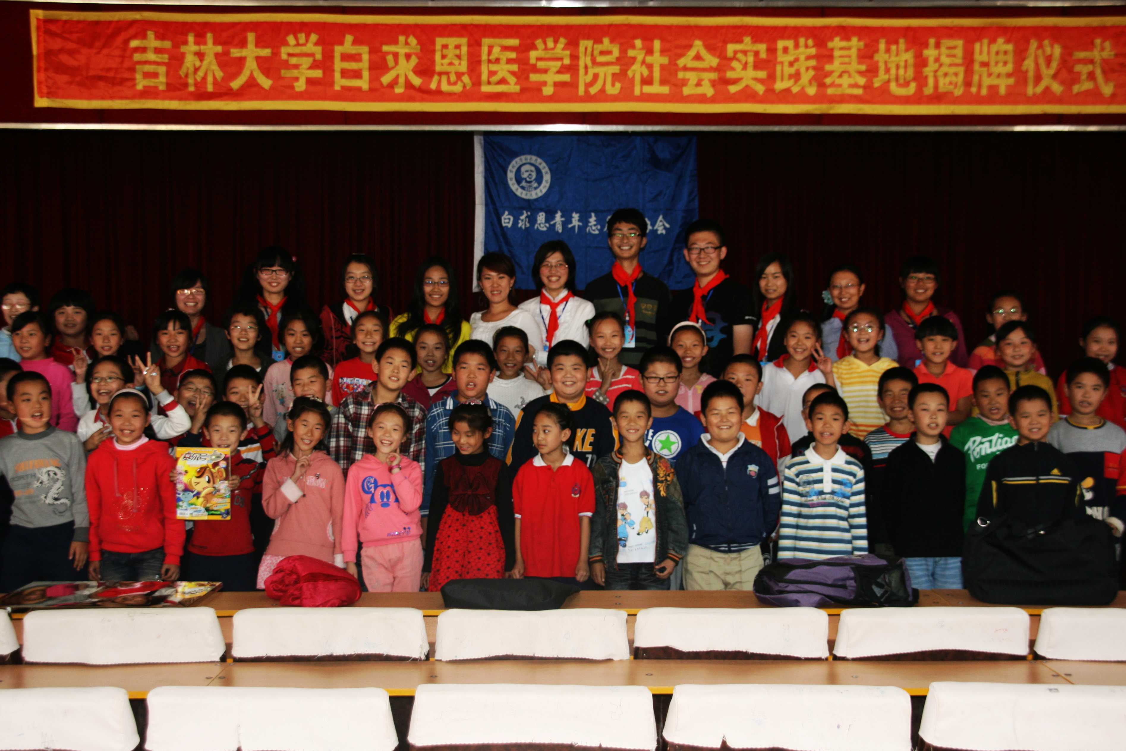 白求恩医学院社会实践基地”揭牌。最后,白求恩青年志愿者协会的志愿者们进行了首次志愿服务活动,为明德路小学学生宣讲白求恩精神并进行医学知识讲座,活动深受学生们的喜爱。