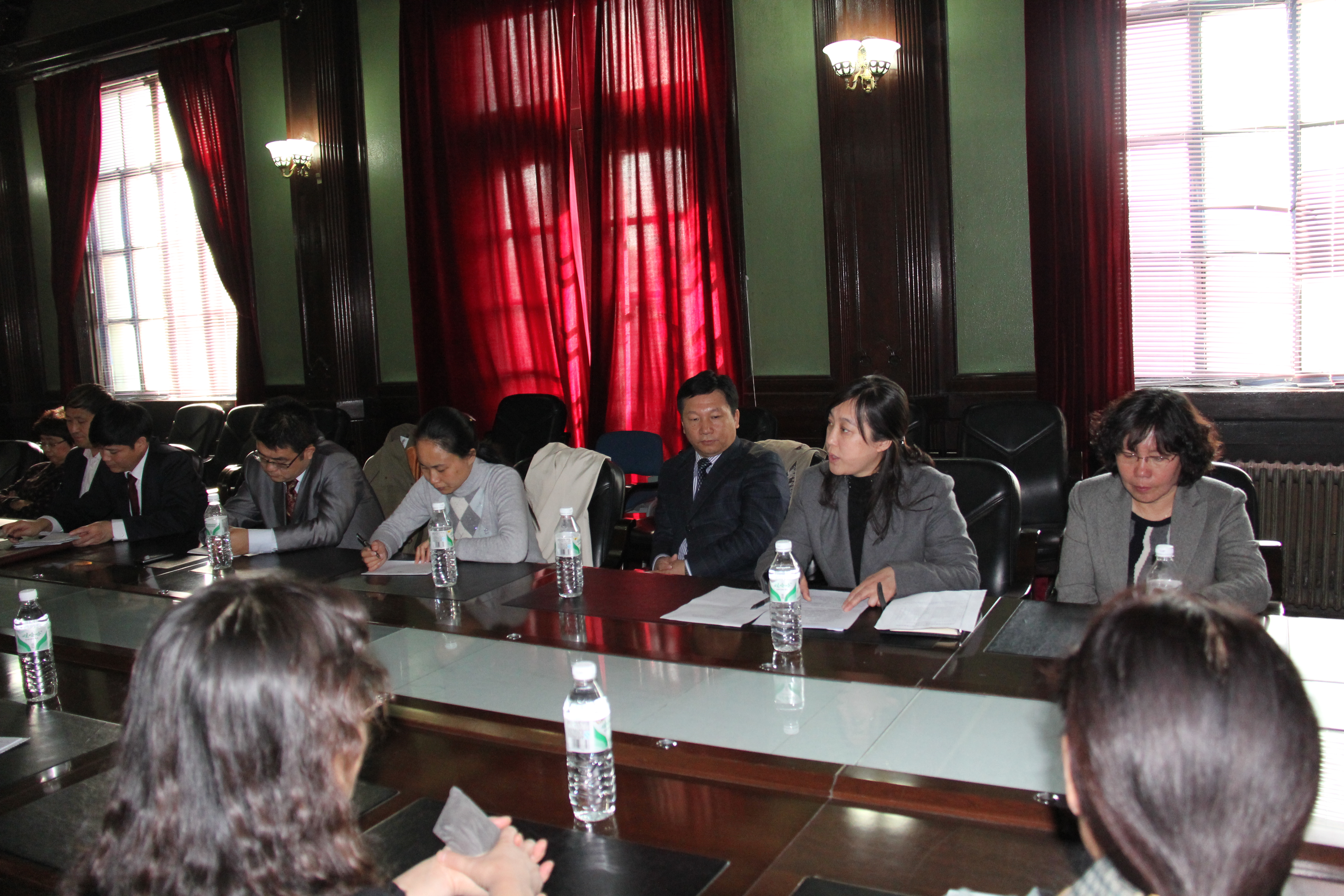 代表团院长张嘉宁、党委书记王跃年、副院长邹原、党委副书记李旭红及基础医学相关专业教研室主任等一行十人访问白求恩医学院,在基础楼四楼学术报告厅召开了座谈会。白求恩医学院相关领导和学系主任参加了会议。白求恩医学院党委书记屈英和主持了会议。