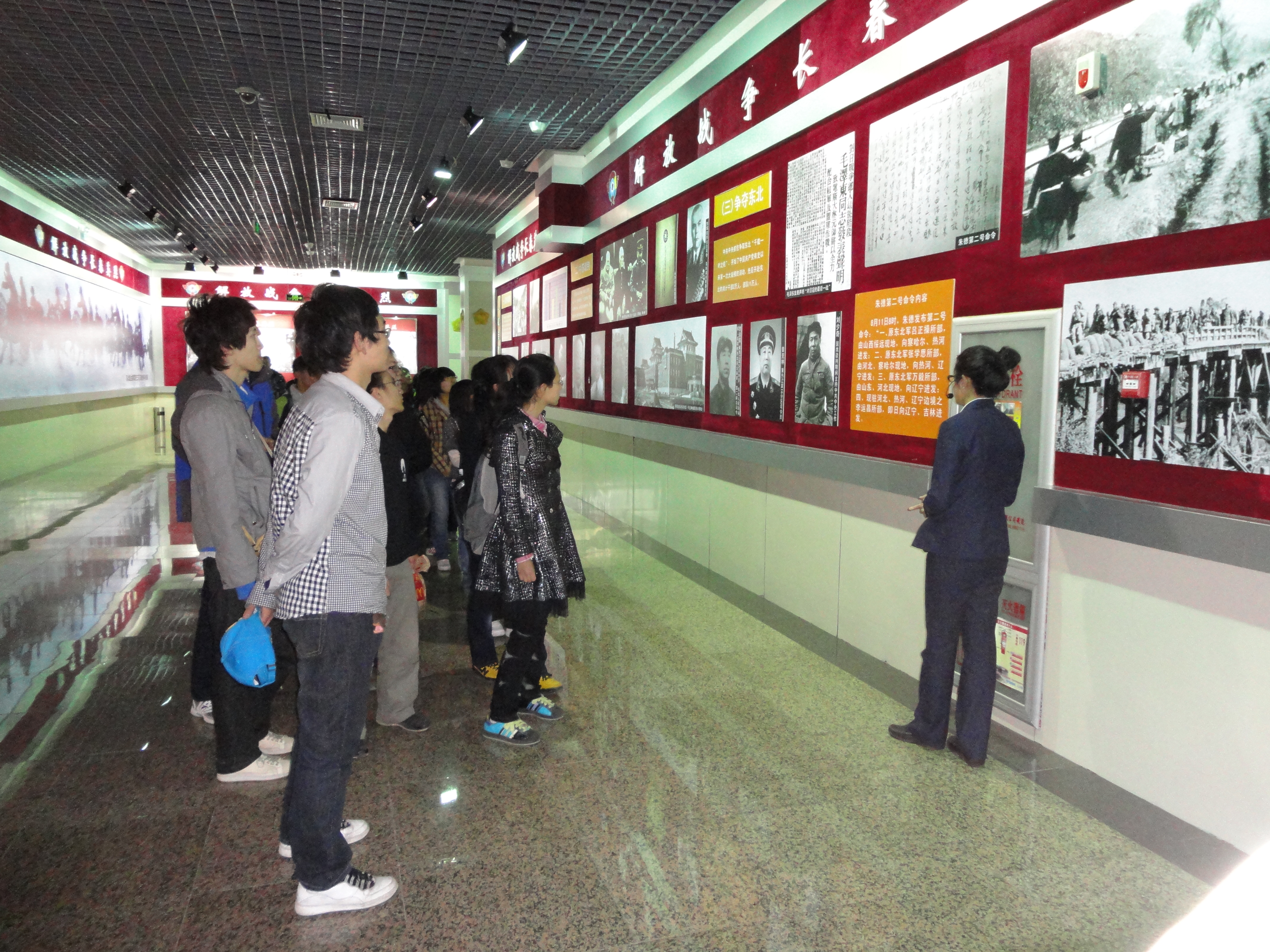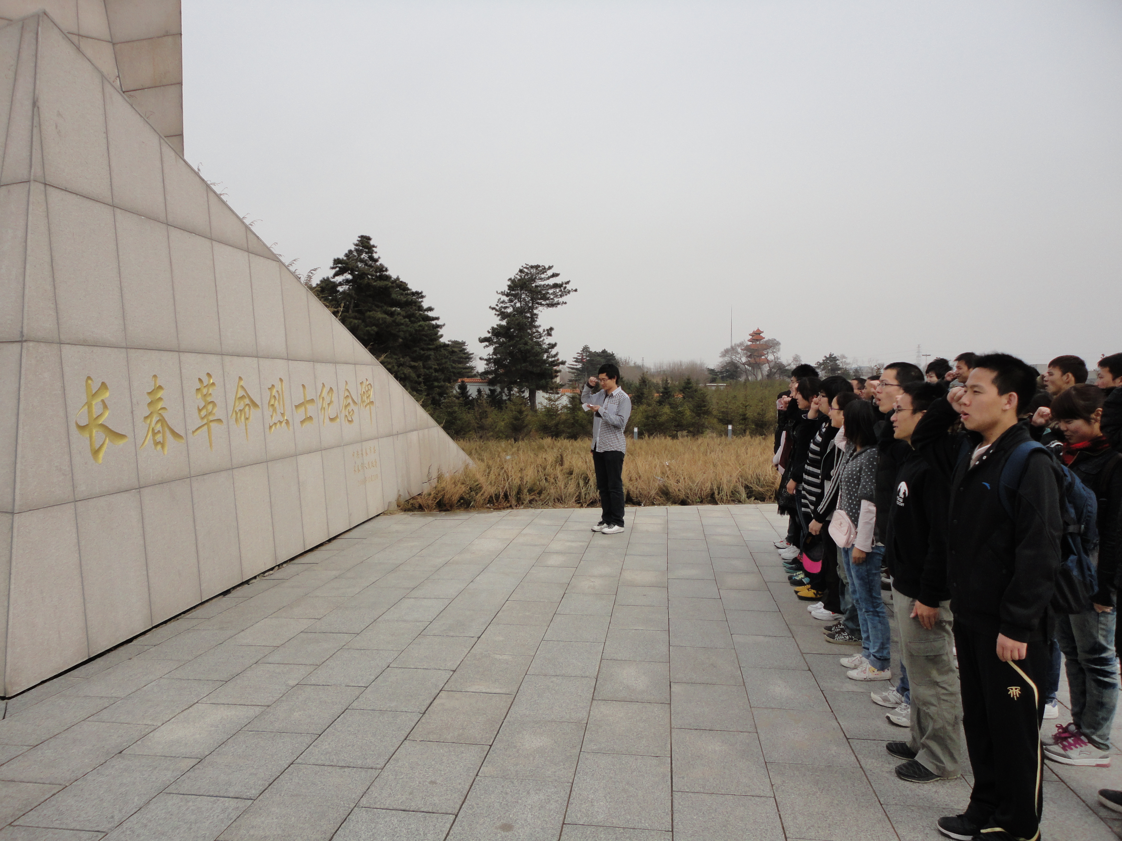 团支部全体成员于新民校区第二教学楼2206教室观看了影片《建国大业》,回顾了祖国建国的历程,体会新中国的来之不易。次日,全体同学兵分三路,模拟长征“会师”,分别乘公交、轻轨和骑自行车于九龙源烈士陵园汇合,并于下午参观了九龙源烈士纪念馆,了解了长春解放历程,缅怀了在解放战争与抗美援朝战争中英勇牺牲的革命烈士。(学生记者 沙欣)