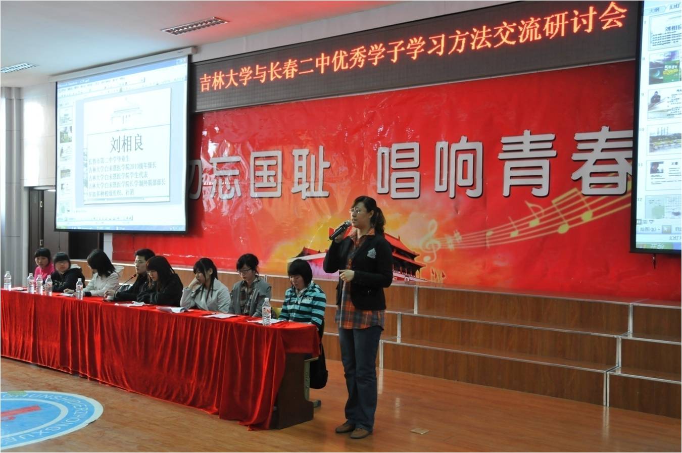 中心校区。之后,在李四光楼举行讲座,就学习、生活、心理等方面与中学生们进行了交流。次日,团支部成员分别前往长春市第二中学和长春市第五中学,通过自由交流、举行讲座等形式为高中生解决高中学习生活中遇到的问题,介绍高中学习方法。