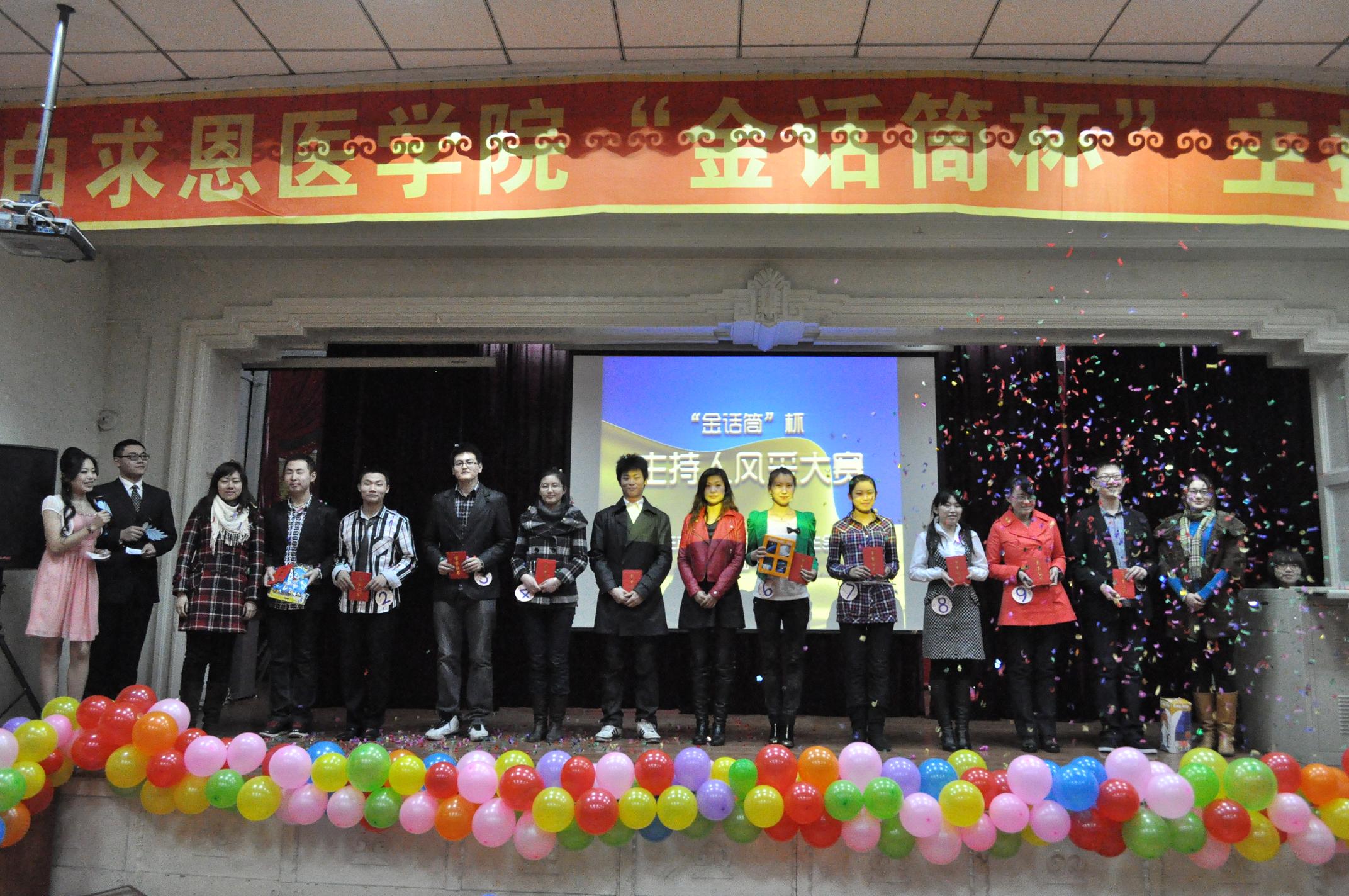 三轮角逐过后,701002班田杰荣获本次比赛一等奖,701009班的贾尔肯阿依.阿布杜拉依和701010班严宇分获二、三等奖;700901班张文嘉获“最佳表演奖”,700906班姜莹获“最佳人气奖”。本场比赛的前八名选手获得了进入白求恩医学院杏林秋实艺术团主持人团队的资格。