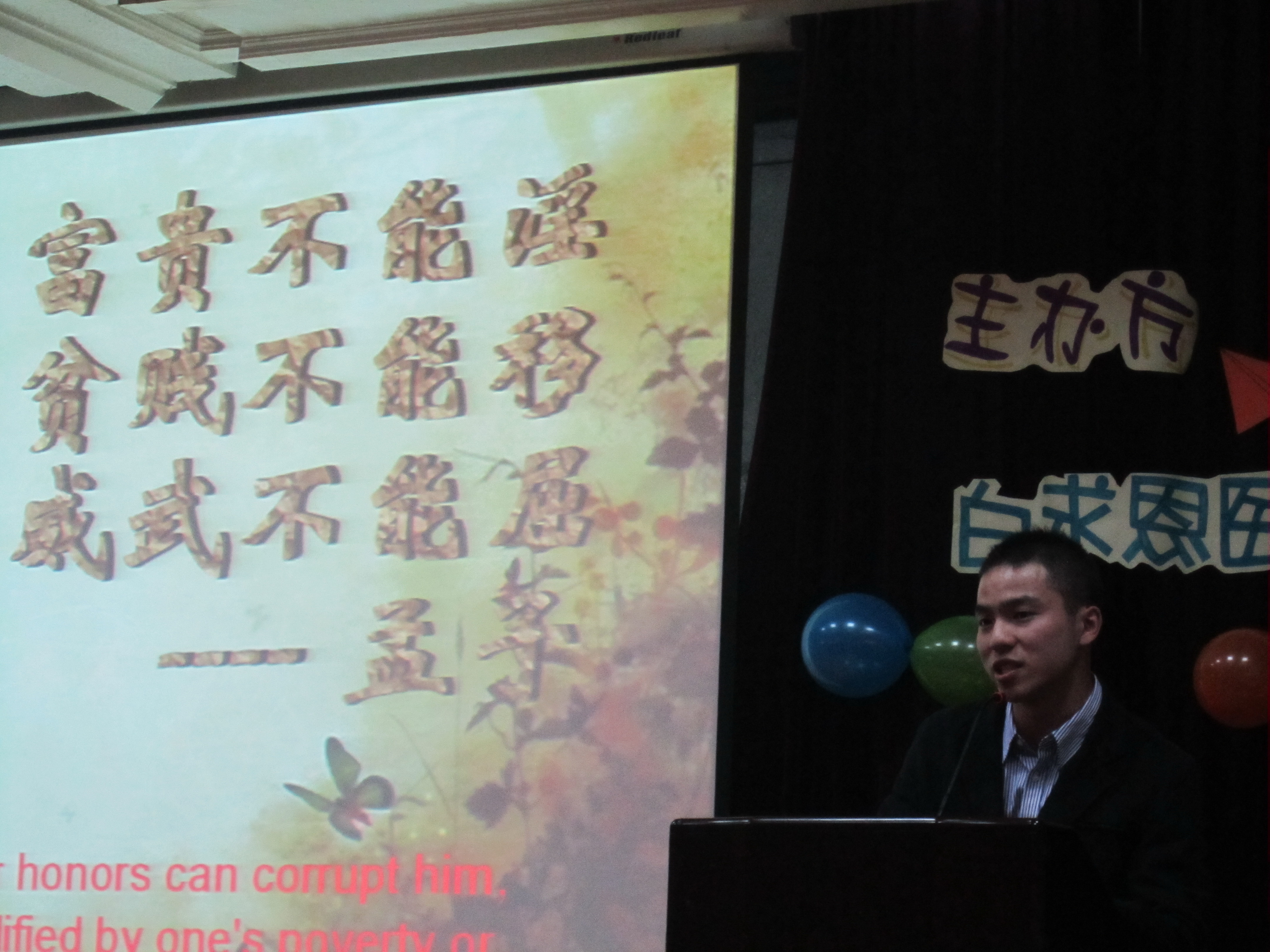 10月22日18时,白求恩医学院“畅想杯”英语演讲比赛决赛在基础楼二楼多功能学术报告厅举行。公共外语教育学院李朝教授、张晓平副教授、国际友人Fabian、白求恩医学院病理生理学系李洪岩副教授、生物化学教研室张纪周副教授担任了本次比赛的评委,学院党委副书记兼副院长苑锐出席比赛。