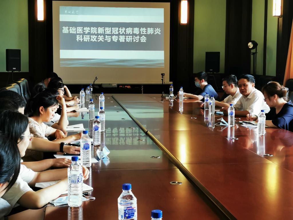 新型冠状病毒性肺炎科研攻关与专著研讨会在基础楼四楼会议室召开,会议由科研主管副院长辛颖教授主持,学院院长孙连坤教授、副院长刘海岩教授、孙巍教授出席了会议,各学系中青年科研骨干共26人参加了此次会议。