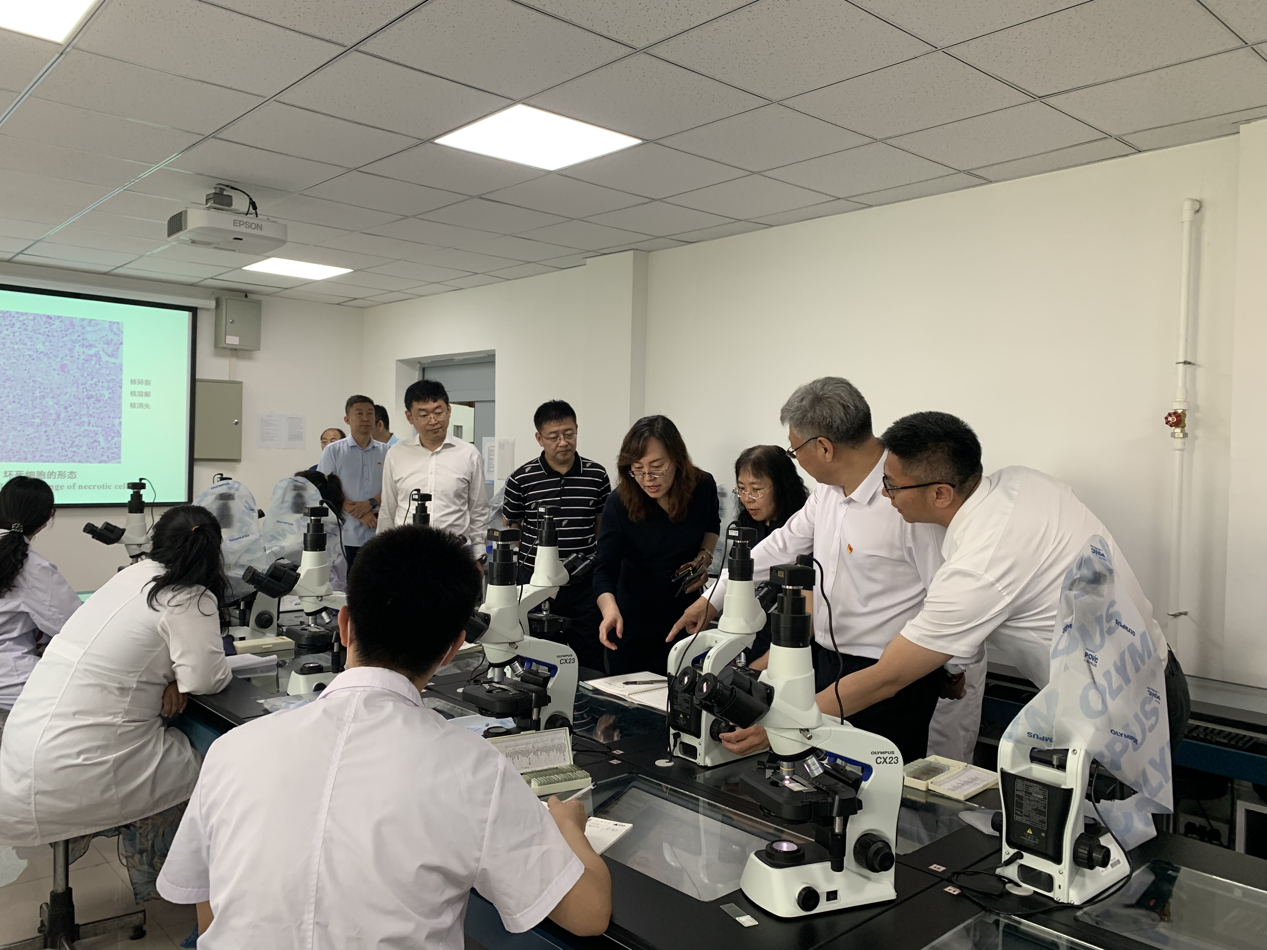 院长王放的工作汇报,随后,走进实验室向师生表达问候。在可移动实验平台,于蕾老师和学生们正在做的家兔呼吸运动的调节手术演示实验,学生可通过清晰的大屏幕看到手术演示全过程,真正实现互联互通,实时互动。在病理实习课堂,观摩了何旭老师“损伤的修复”课程,观看了学生的实验演示并亲切问候同学们的学习状况,病理生物学教育部重点实验室主任、副院长辛颖向冯书记介绍了病理学形态实验的相关情况。冯书记对同学们的实操能力给予了充分肯定。在分子生物学实验室,老师正在带领同学们进行转基因斑马鱼克隆实验。斑马鱼是国际上用于快速研究人类疾病信号传导途径、有效药物高通量筛选的最佳模式生物之一。冯书记对学院在斑马鱼方面的前沿研究表示肯定并寄予厚望,期待学院的斑马鱼研究能在探索人类疾病发病机理,筛选治疗靶点,进行新药开发以及药物毒性与安全性评价上发挥更大的作用。最后,冯书记一行来到医学影像虚拟解剖联合实验中心检查调研,参观3D打印白求恩像,观看了丝袜av