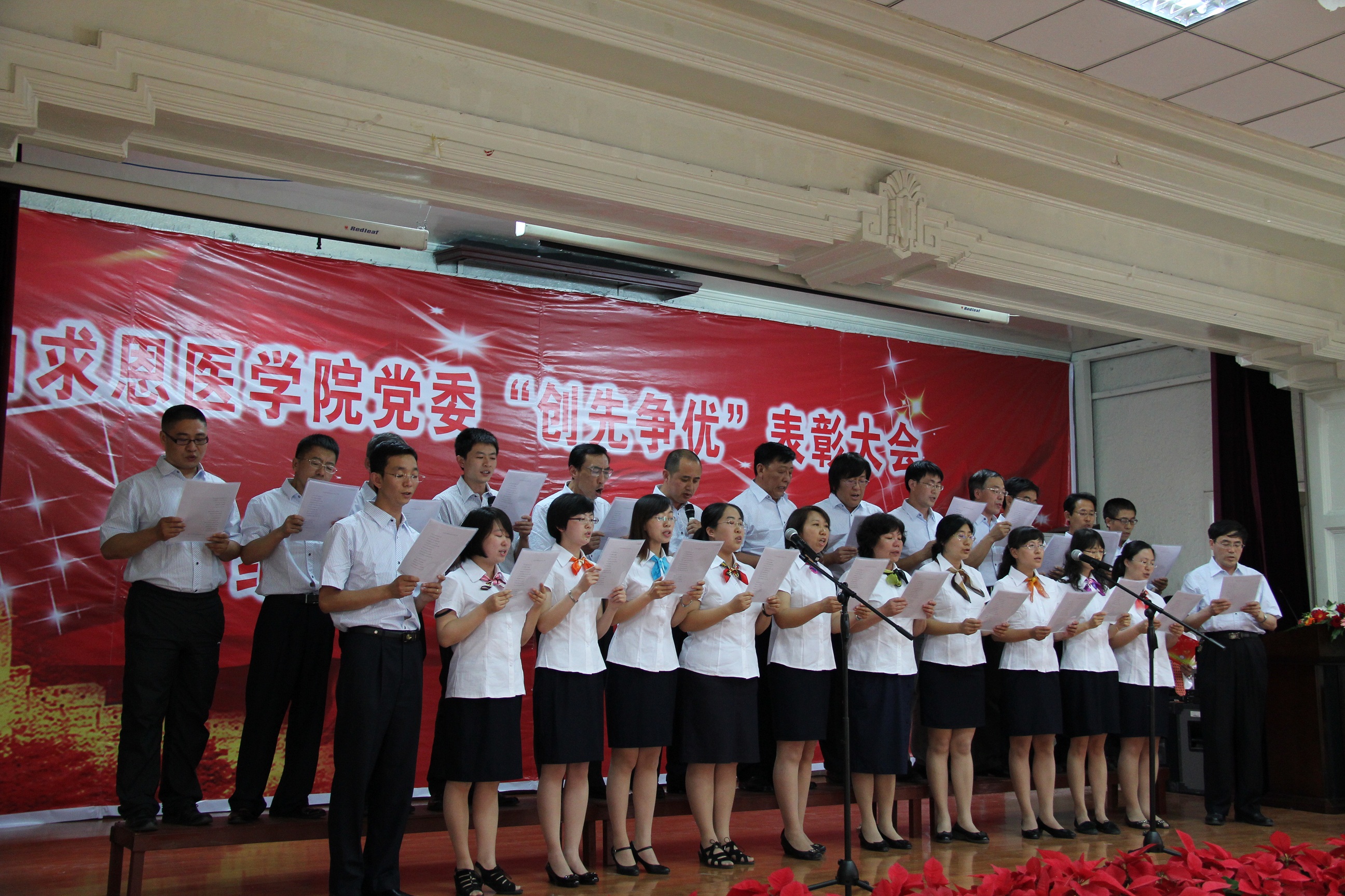 90年前的七月,一个伟大的政党宣告成立;90年前的七月,一面火红的旗帜冉冉升起。90年风雨兼程同舟共济,90年峥嵘岁月砥砺前行。在举国同庆建党90周年的浓厚氛围中,白求恩医学院党委于6月23日下午1时30分在基础楼二楼多功能学术报告厅隆重举行“创先争优”表彰大会暨庆祝建党90周年红歌会。校党委办公室主任陈权,校纪委副书记、纪委办公室主任兰恒斌,校党校副校长、党校办公室主任于传波,校妇委会主任申桂香,校党委组织部副部长聂宏凯,校党委宣传部副部长董汉良,白求恩医学院院长李玉林及全体院领导出席了大会,全院教职工、部分学生党员代表参加了大会。