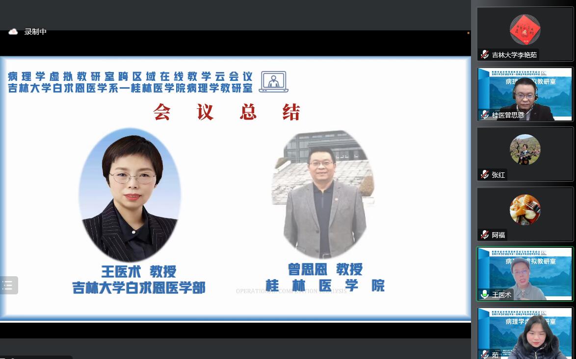 病理学系和桂林医学院病理学教研室两所省级虚拟病理学教研室共同主办以及上海梦之路数字科技有限公司协办,联合吉林广西医学高校病理学教研室共同参加的跨区域在线云备课正式开启。
