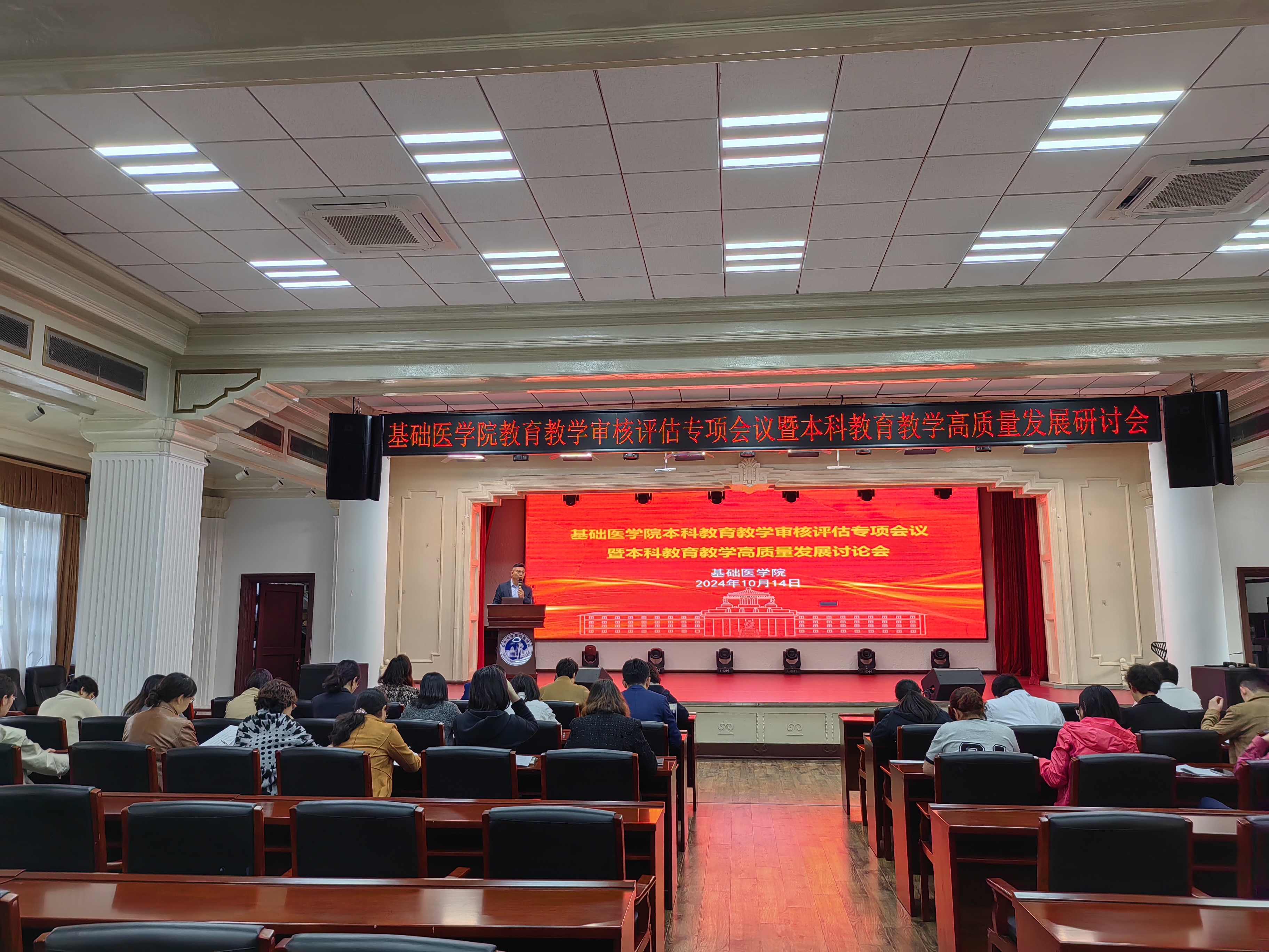 于2024年10月14日下午在基础楼二楼学术报告厅召开本科教育教学审核评估专项会议暨本科教育教学高质量发展研讨会。会议由学院院长王放教授主持,学院党政领导班子、学院教学委员会委员、学院教学督导组、各学系(教研室)主任及教师代表40余人出席此次会议。