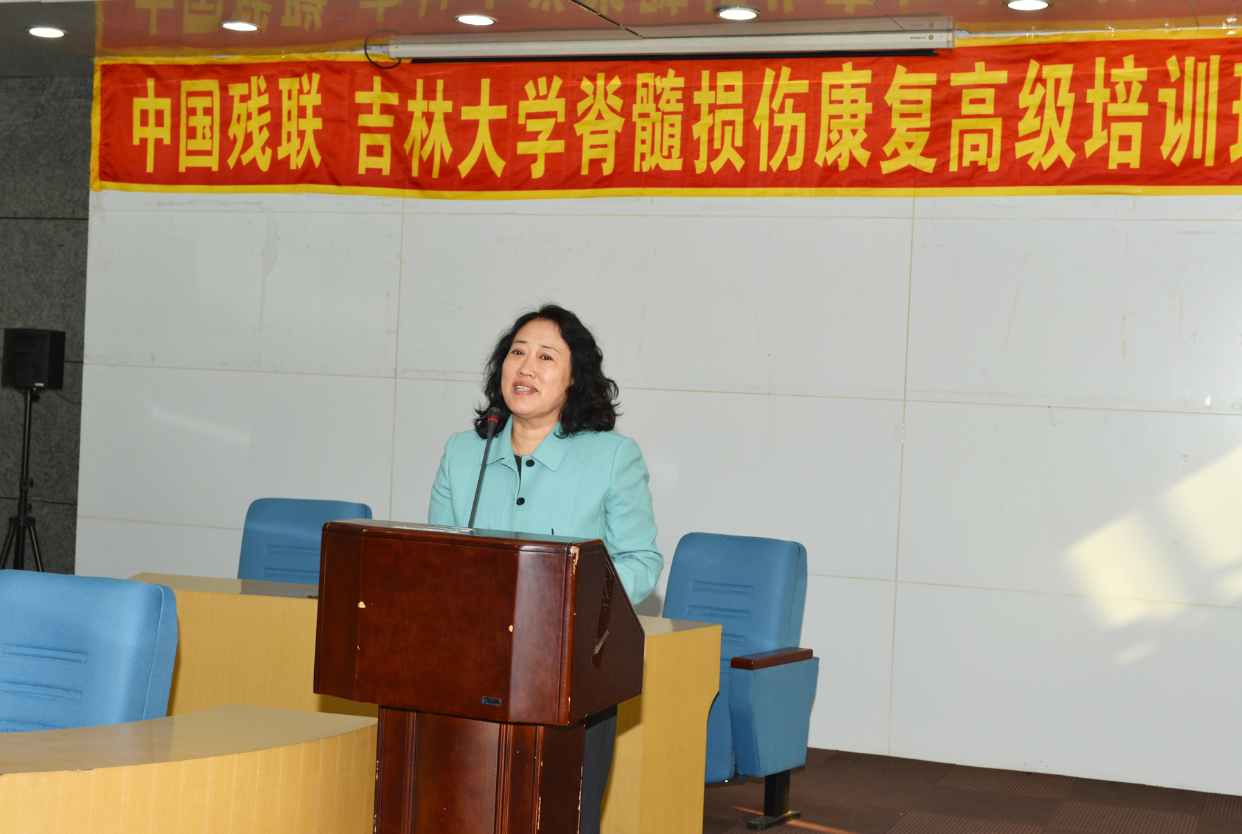 医学教育资源和综合办学优势,根据学员的需求和实际,精心设计理论与实际结合、课堂教学与康复机构实地实习结合的培训内容,认真做好中残联“十二五”在职康复专业骨干和学科带头人培训工作,提高为残疾人提供康复服务的能力和水平,使更多的残疾人达到“人人享有康复服务”的目标,推动残疾人康复事业全面、协调、可持续发展。吉林省残联康复部王建平部长在致词中提出:作为中残联康复人才培养基地,白求恩医学院举办了多次康复人才培训班,特别感谢为吉林省培养了一批优秀的康复人才,希望学员通过培训班的学习,提高业务水平,掌握最新的脊髓损伤康复治疗方法,为我国的残疾人康复工作做出贡献。白求恩医学院副院长程丕显主持了仪式。