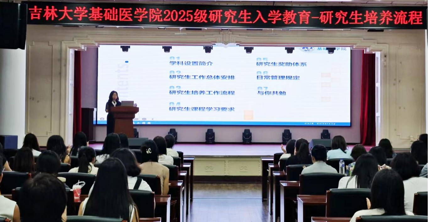 首先,院长王放教授对新生的到来表示热烈的欢迎。他围绕基础医学领域的发展历程与未来趋势展开分享,深入浅出地描绘了学科的前沿动态与广阔前景。同时,王院长向新生提出殷切期望,鼓励大家主动与导师沟通交流,结合个人兴趣与学科优势选定研究方向,扎实积累科研能力,养成求实严谨的科学态度和求真创新的学术精神,未来走向国际高水平科研平台,展现丝袜av