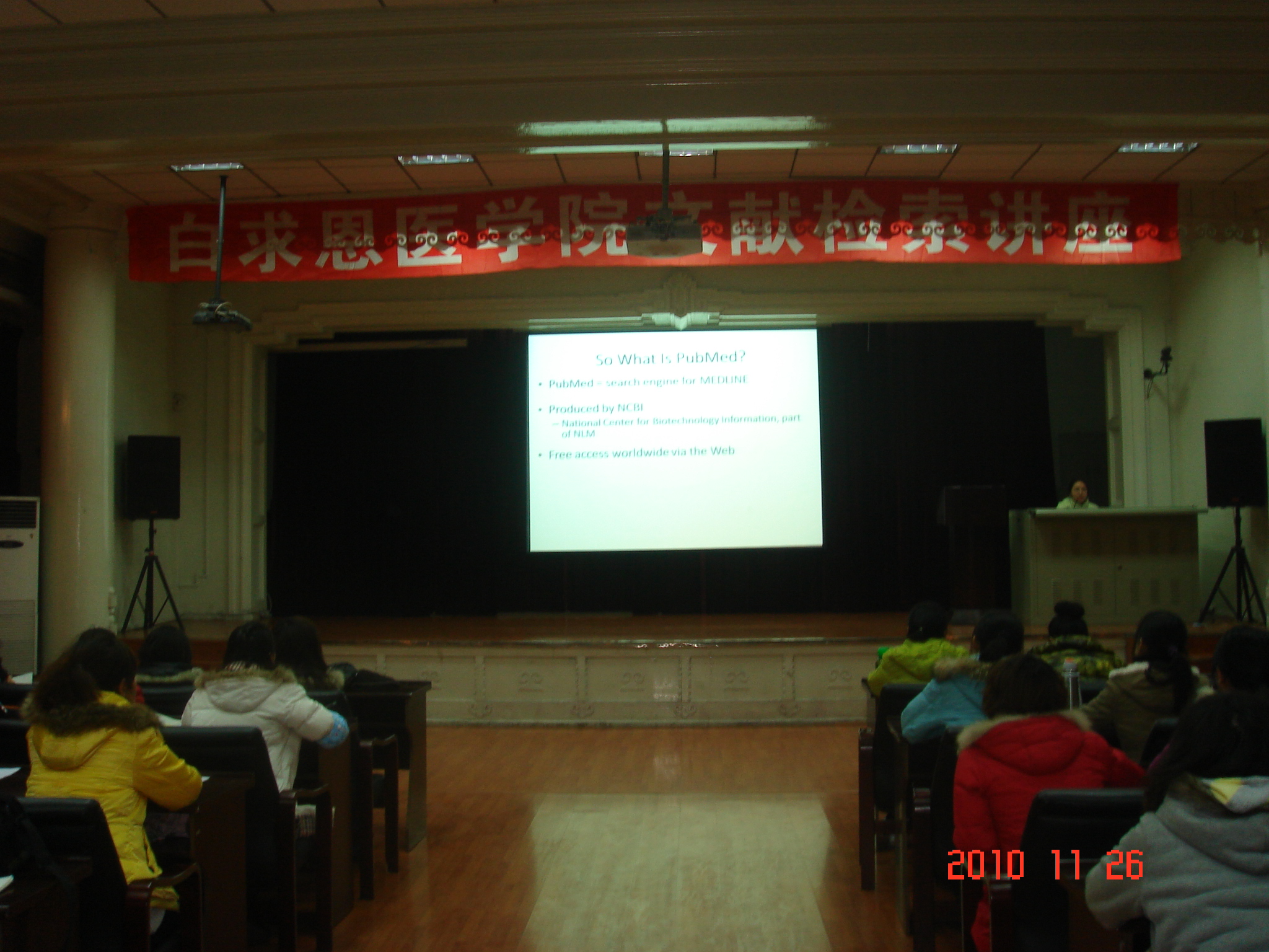 11月26日晚,在基础楼二楼多功能学术报告厅,白求恩医学院研究生会邀请公共卫生学院信息管理教研室王丽伟老师进行了一场文献检索的专题讲座。学院党委副书记费淑波、研究生办公室主任陈野和2010级研究生一起参加了专题讲座。研究生会学术部长刘婷主持了讲座。