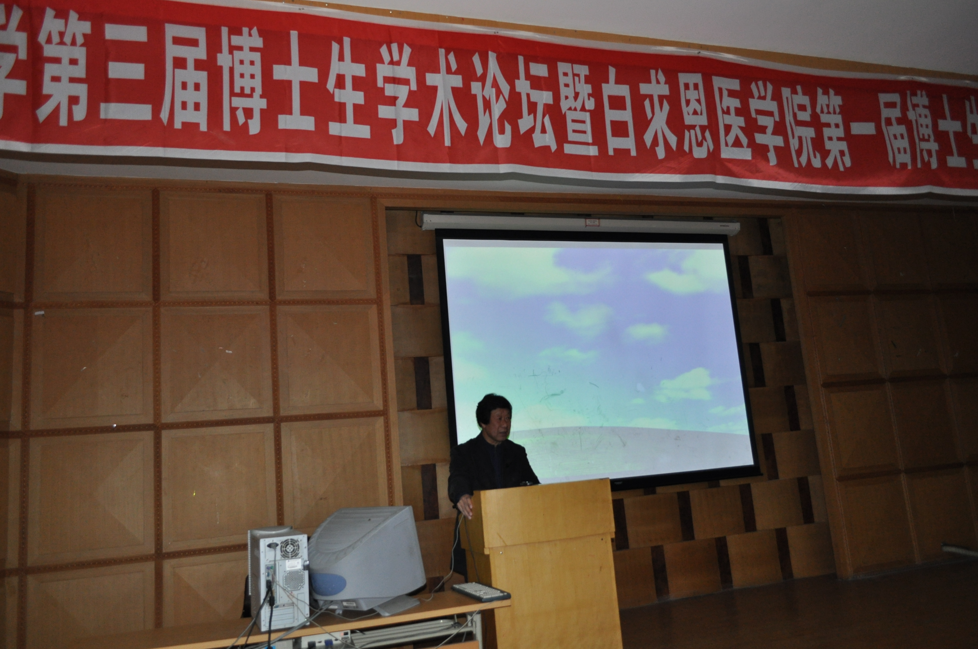 白求恩医学院、白求恩医学院研究生会承办。首先,常务副院长孙连坤为本次论坛致辞,他强调了本次论坛主要是为博士生提供一个宽范围、多视野、高起点的学术交流平台。同时,对研究生提出了四点要求,即要具有交流协作的精神、评论的能力、接受的精神及感恩的精神。
